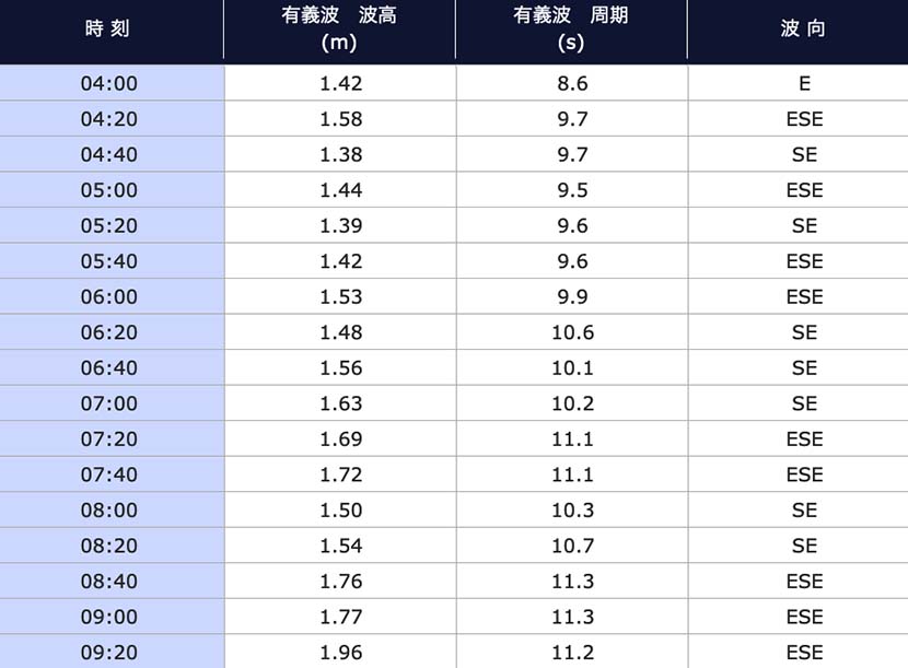 2.5mの10秒を最大値として昨夜から下降しはじめた。