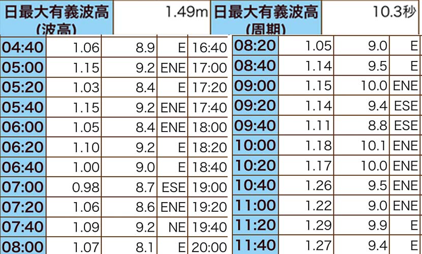 周期およそ10秒という東北東と、
