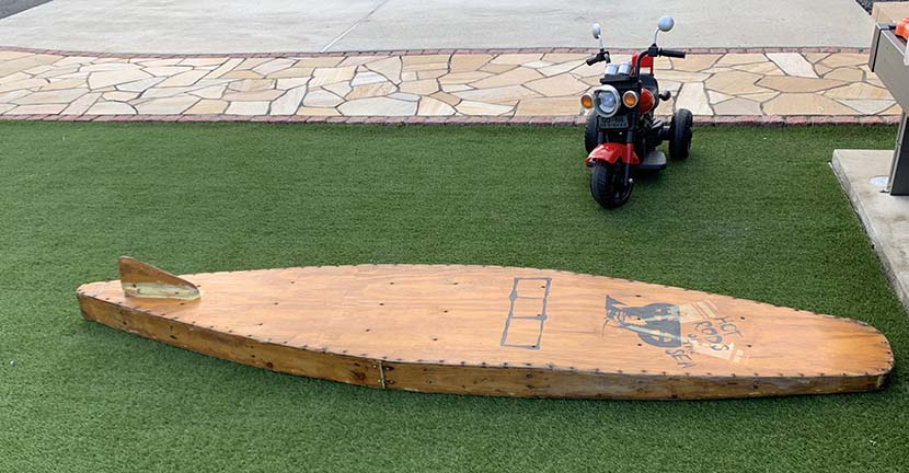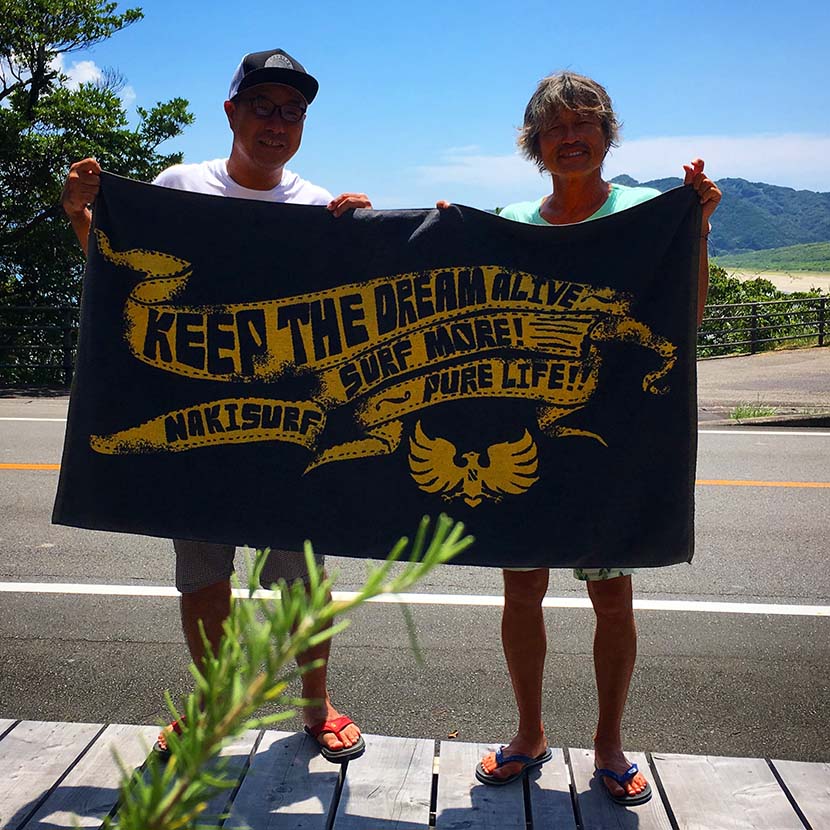 クワイエットファンク&グラッシー&メロー特注ボードで波に乗った。