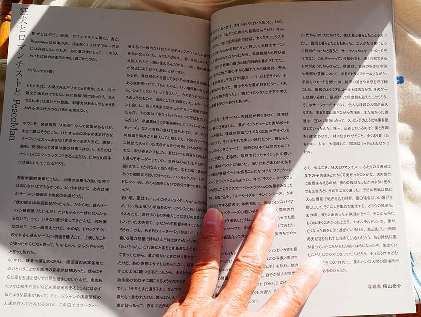・国際的な交友関係と視野の広さを持ち、⾃⾝の連載では批判を恐れずにサーフィン業界の構造的問題に切り込むなど、⽇本におけるサーフィンジャーナリストの先駆けとなった