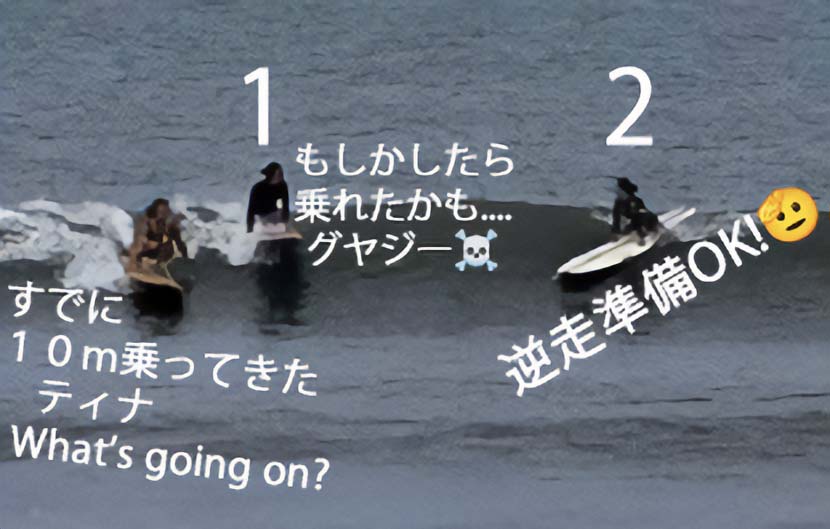彼女が乗っていくと出現したサーファーが1の人だ。