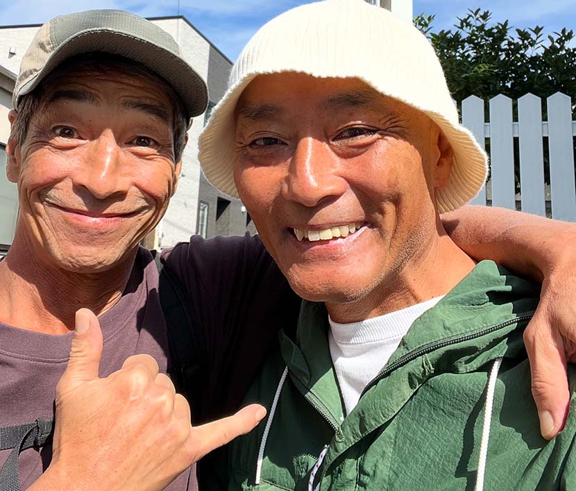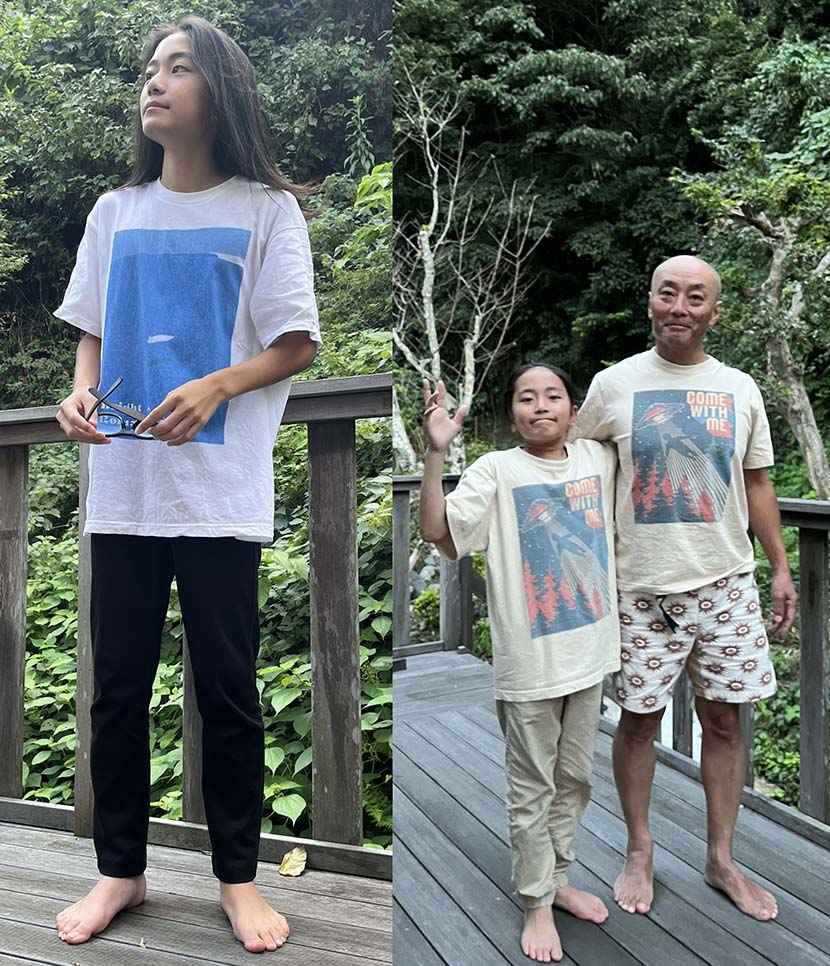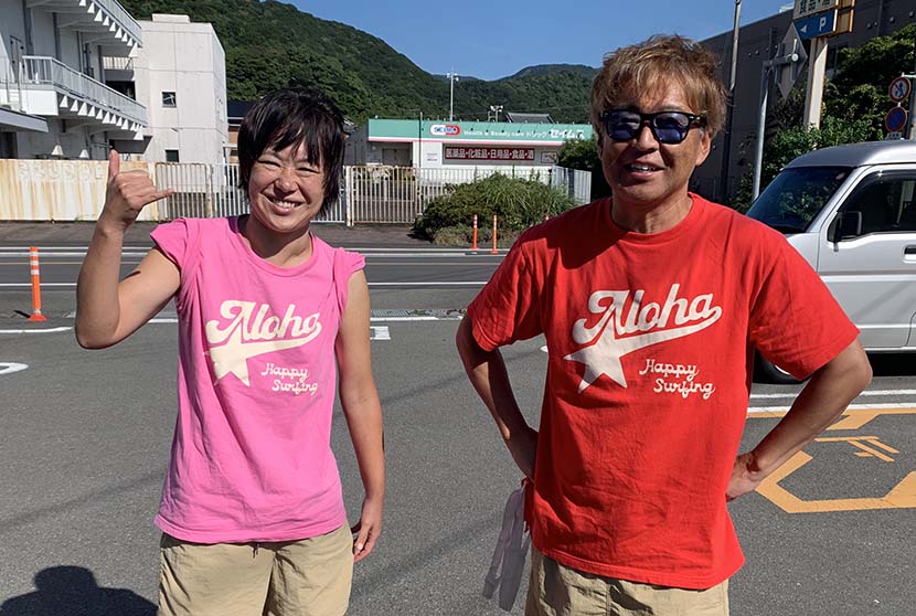 河合さんがアロハ・ハッピーサーフTのペアルックだった。