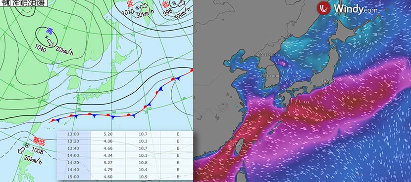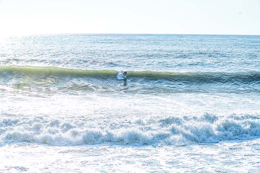 風の影になるブレイクに行くとそれでもたまにオバケ波がやってきて、