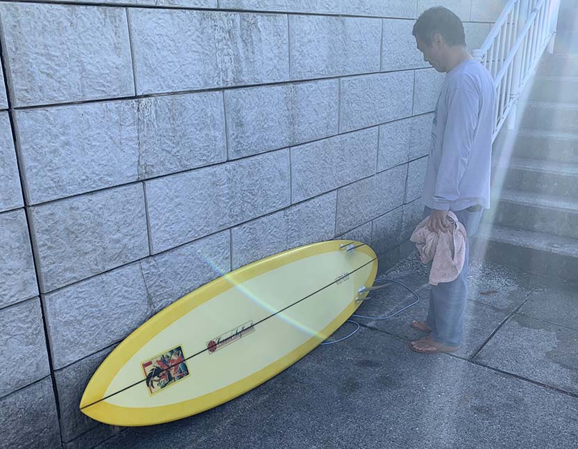 パドルアウトするとウェットスーツはまだいらないと気づいた。
