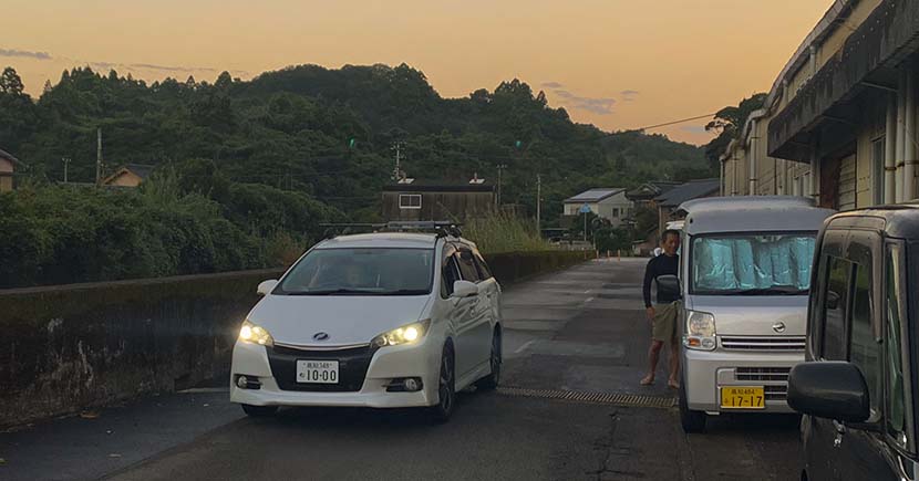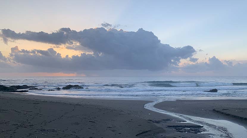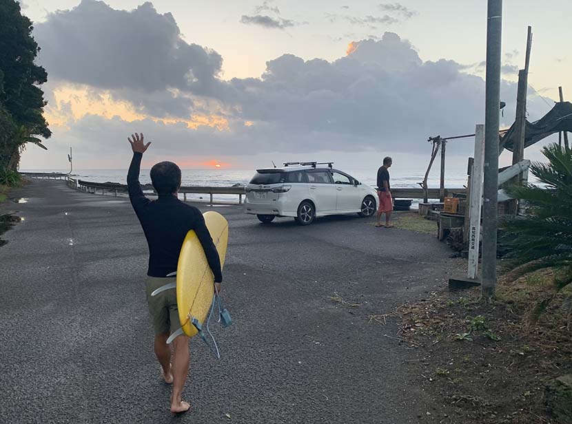 夜明けごろに夜勤明けのスマイリー・グリズリーがクマビーチに戻ってくる。