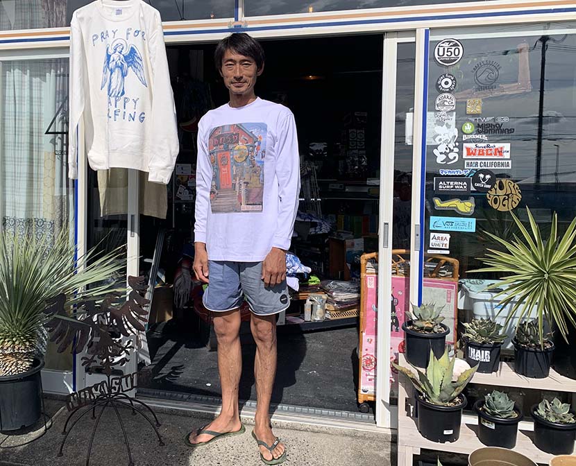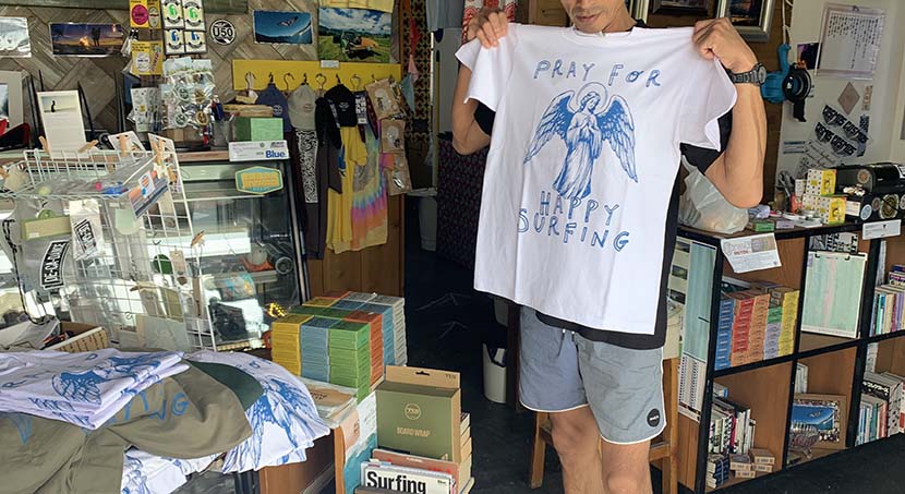 これから発売開始となるPray for Happy Surfing Tを求めてくれた。