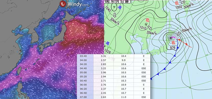 今朝は東〜東南東うねりが2.5mの11秒を計測していた。