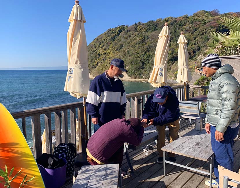 サーフ歴20年とは思えないほど初心者の所作で、