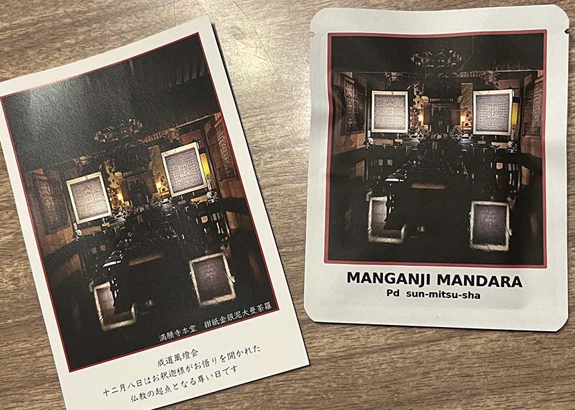 両界曼荼羅が焼き付けられたポストカードと、