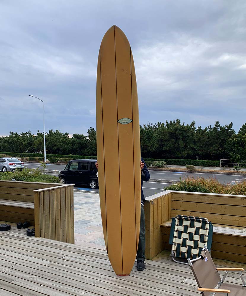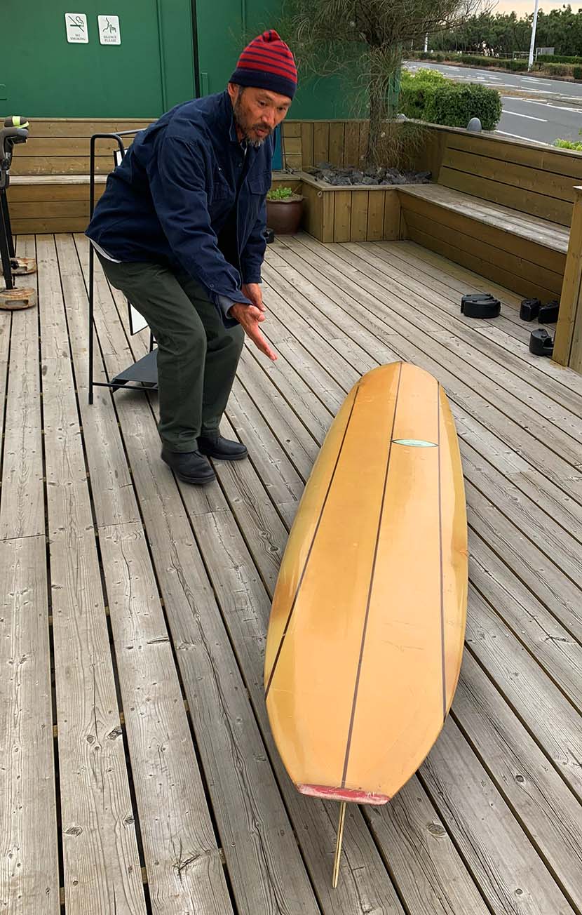 今度は秋山くんのルーツである1980年代のサーフボードを見せてくれた。