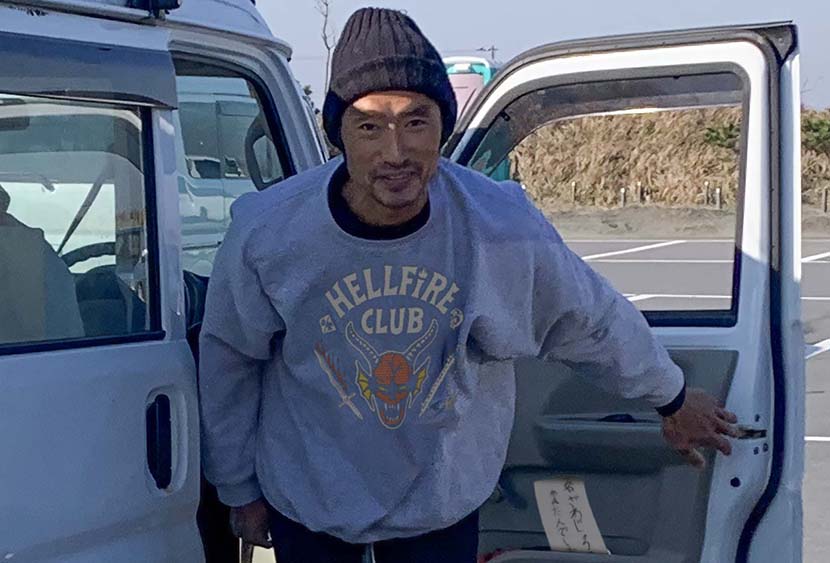 マジカル・カーブツインと書かれたビンテージTに投資しろと売り込んでいた。