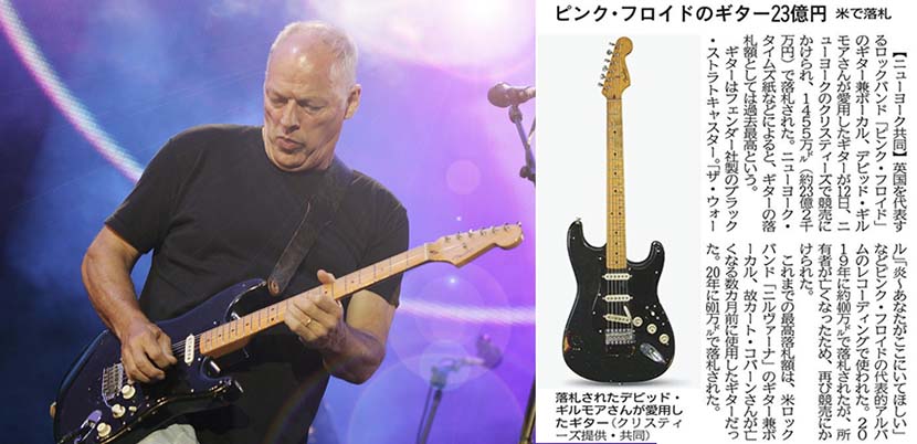 デビッド・ギルモアのギターが23億円で落札されたとあり、