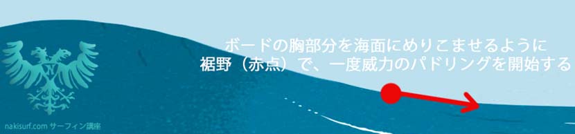 つまりうねりの裾野からテイクオフを開始すれば、