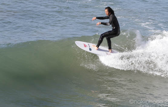 フィンが1本なのにしっかりと波斜面をグリップする。