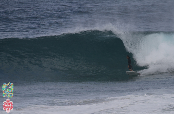 ボードが引っ張られそのまま波の中に引き込まれていく。