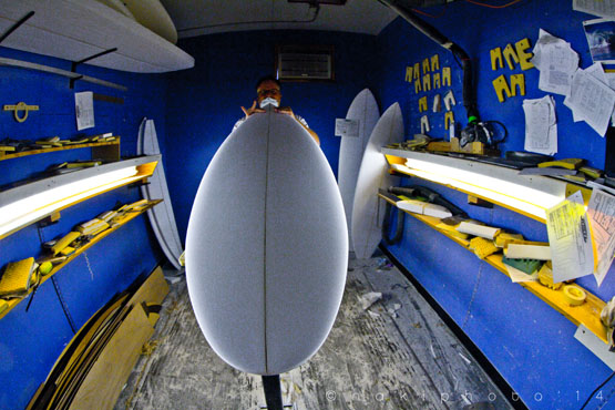 彼のシェイピングベイにカーブボールが里帰りしました。