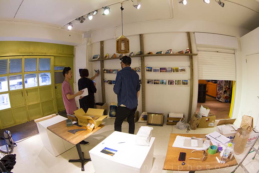 木片に直接プリントしたやさしく温かみのある作品群を右壁に。