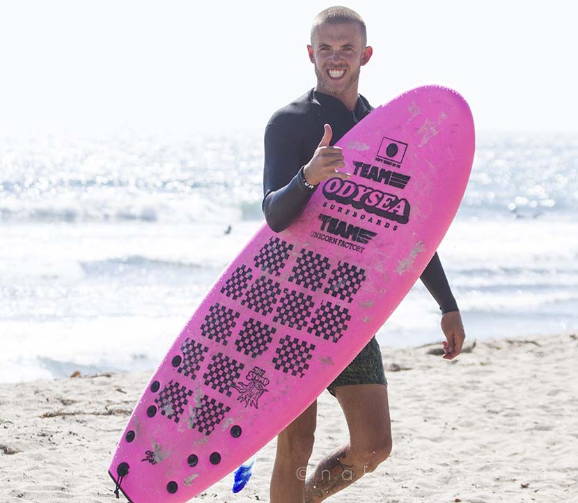 彼はロガー(ロングよりも大きいボードに乗る人のこと)なのに、