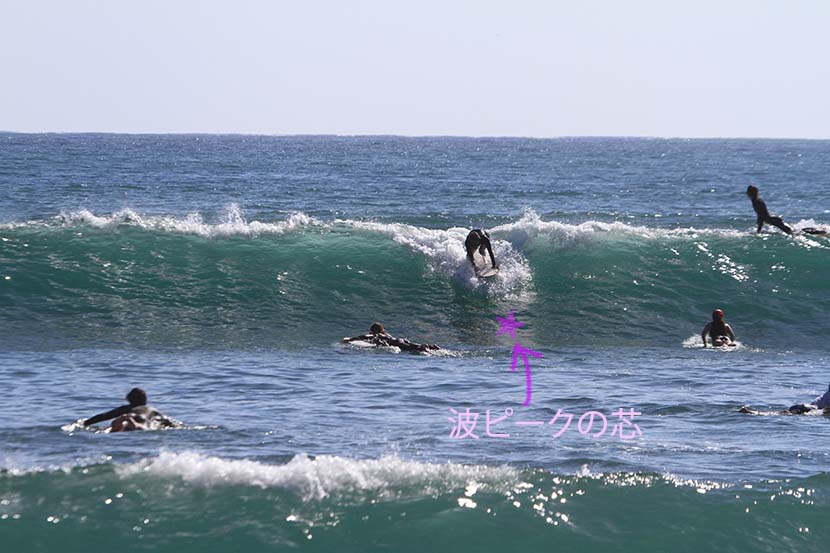 (波斜面に張りついて滑走できる)斜めライン上に初心者が見えます。