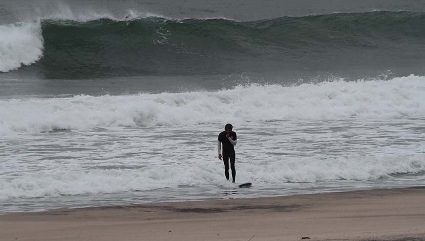 オープンオーシャンは荒れて、水平線の彼方でブレイクしている。