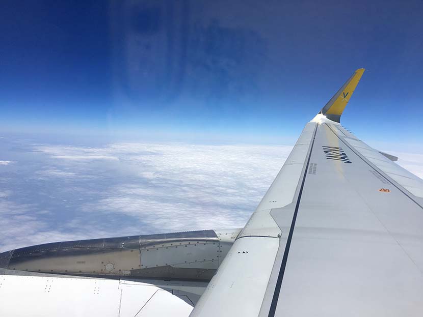 滑走路を離れた瞬間から大粒の雨が降ってきたこと。