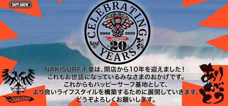 NAKISURFはおかげさまで20周年を迎えました。 これからもどうぞよろしくお願いします。 普段98(295cm)等のボードに乗っているので、 こうして短いボードに乗ると、 自在にターンができることに気づいた。 「普段 […]