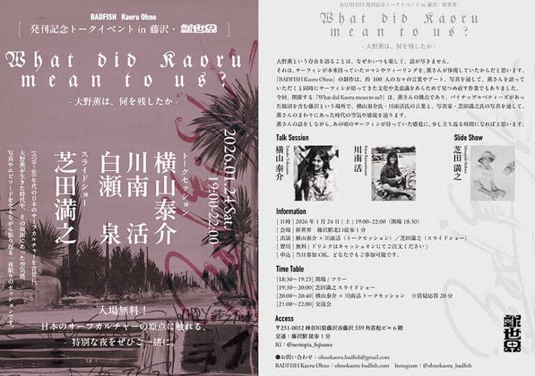 【サーフィン研究所】昨日のイリエのスモール・パーフェクション(動画あり)_「What did Kaoru mean to us?」 大野薫さん「BADFISH」発刊記念イベントに向かいます!_(982文字)