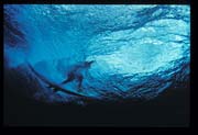 翌朝、まんまと早起きしたマットと俺は、昨日と変わらない沖の白波と無風を確認し、みんなの寝ているうちに秘かに出発しようと試みたが、トイレに起きたトリーに発見され、これをアッシャーも知ることとなり、結局全員を待ち(これを恐れていたのだが、結局30分以上もかかった)、出発したのだった。この完全なる波で水中撮影をするにはスポットはひとつしかなく、ケンウオージーと俺は順番で撮ることとなった。その際[ガンガンシャッターを押すこと。もし1ロール撮り終えるまで時間がかかるようなら一度ここ(平底船)に戻り、交代する]という約束をして、俺が最初にこの究極波に泳ぎ出た。そして全てのバレルでシャッターを押し、36枚完璧に取り終え、たった20分で交代した。ケンウオージーも同様に撮り始めたと思ったら戻ってくる。完璧な高速バレルは全員に悦びを与え、なお余っている。ボートから望遠レンズでかなりの数のシャッターを押し、さらに水中から2ロール回し、今度はサーフボードを持って沖に出ると、マットがみんなに「普段波乗り出来ない人(ここではケンウオージー、ローガン、そして俺)が海に入ってきたら波を譲ってあげようぜ。彼らはあまり波乗りできないから好きなように乗せようぜ」と神の訓辞のような言葉をいただき、俺たち撮影隊3人に優先権がある乗り放題の1時間となった。