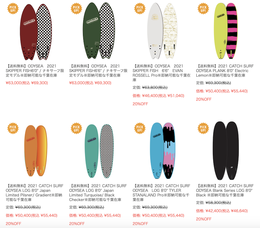 ナキサーフ在庫のCATCH SURFボードが全て20%off!!