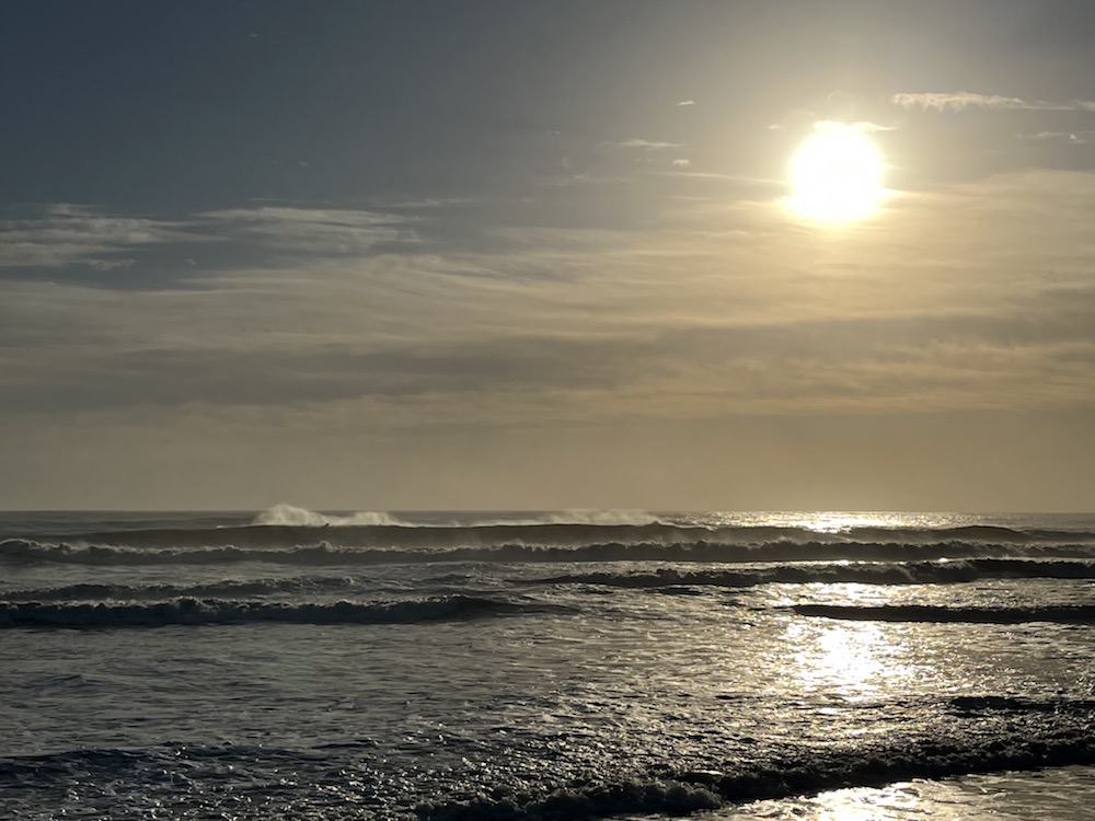 遥か沖合から、まとまりのない波が次々にブレイクし、