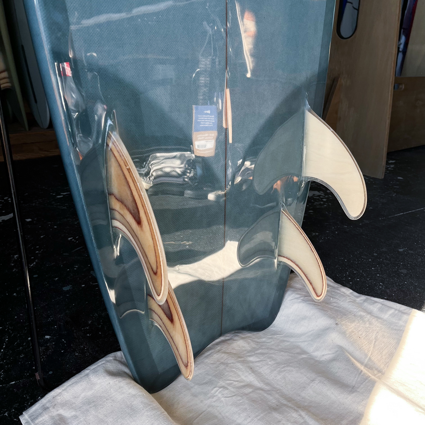 特殊形状のムーンテイルを搭載し、フィン下辺(ボード接合部)に長いベースのキールフィンとマッチングさせますと、レイルターンの際に、この片側の先端からレイルに対してのトラクション、つまり確かな操作性を誕生させます。