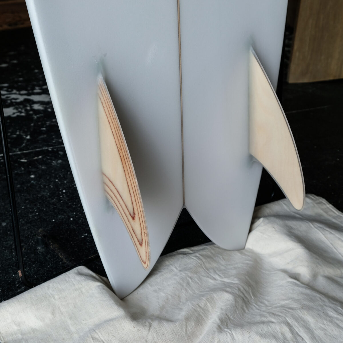 マリンプライウッドのツイン・キールフィンを贅沢にグラスオン。