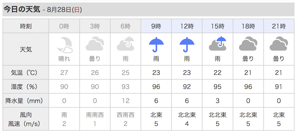今朝の一宮エリアは曇り時々雨、