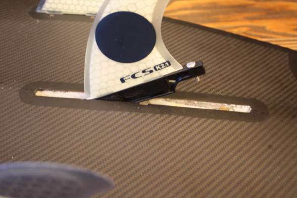 そしてボックスを使用しているサーフボードにもショートボード用のフィンを取り付けられる(FCS用)