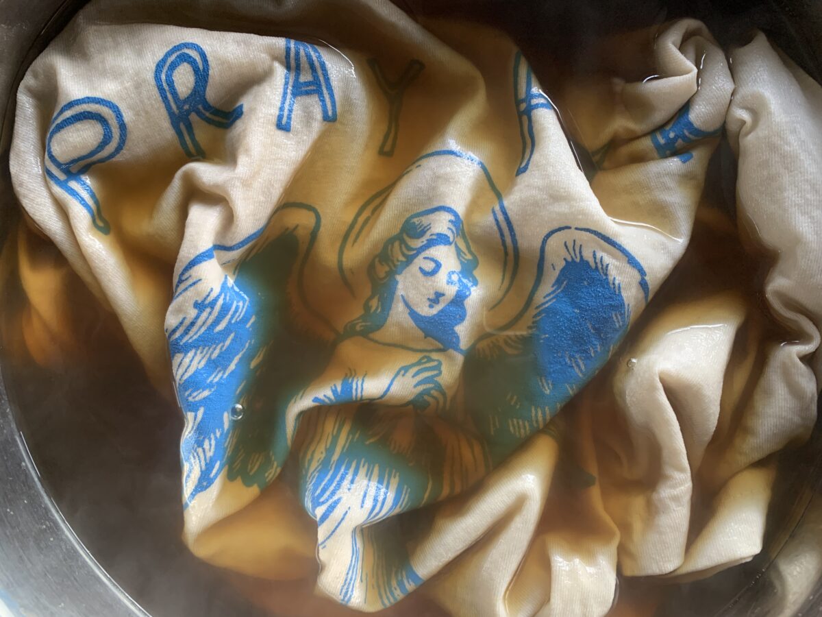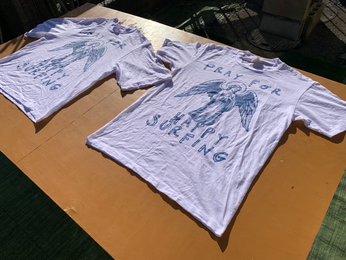 今回は新作Pray for Happy Surfing Tシャツを染めていきたいと思います。