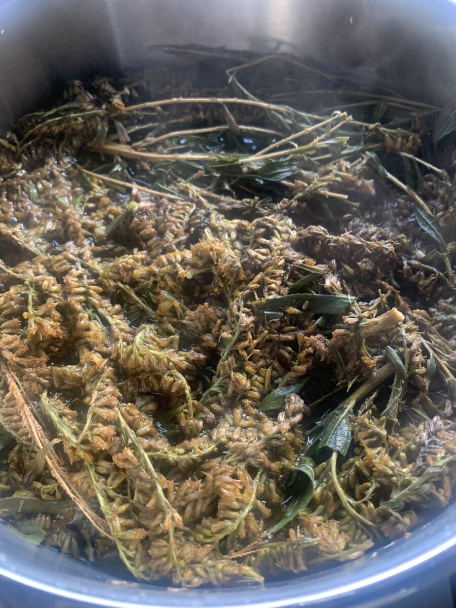 そして、乾燥させたセイタカアワダチソウを煮出していきます。