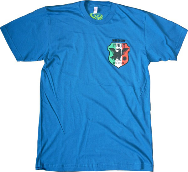 アドリア海を連想させる深いアズーロ(青)のボディに、左胸にはイタリア国旗の緑、白、赤のシールド(盾)