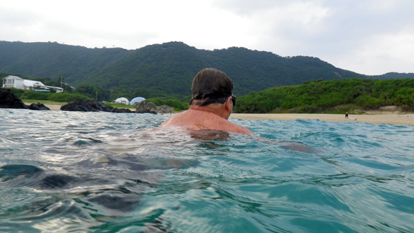 奄美に着いて、まずは今回の旅のお供コールさんと泳いできました。