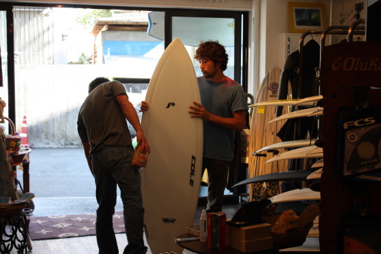 弊社とおるとボード談義で盛り上がっているのは京都ラホヤの圭さん!