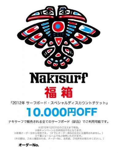 2012年サーフボード・スペシャルディスカウントチケット10000円OFF