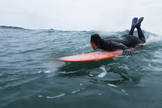 うねりの段階でボードが走り出すので、