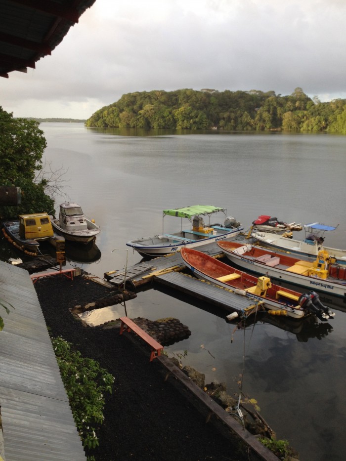宿からボートが出ていて、