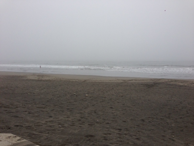 今日は海が朝から濃霧に覆われています、