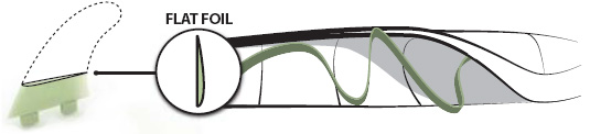 一般的なフラットフォイルは外側に丸みがあり、フィンの内側がフラットになります。