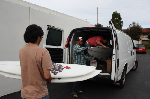 お客様のボードをピックアップ、こうして弊社まで持ち帰り