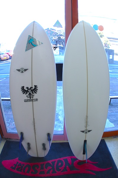 左:NATION CHEVY DX SDS仕様 5’4″ x 19 5/8″ x 2 1/4″ 初売り特別価格:60,000円(税別)