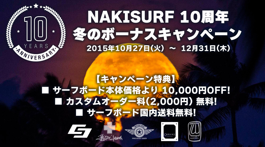 NAKISURF 10周年記念『冬のボーナスキャンペーン』を開催いたします。