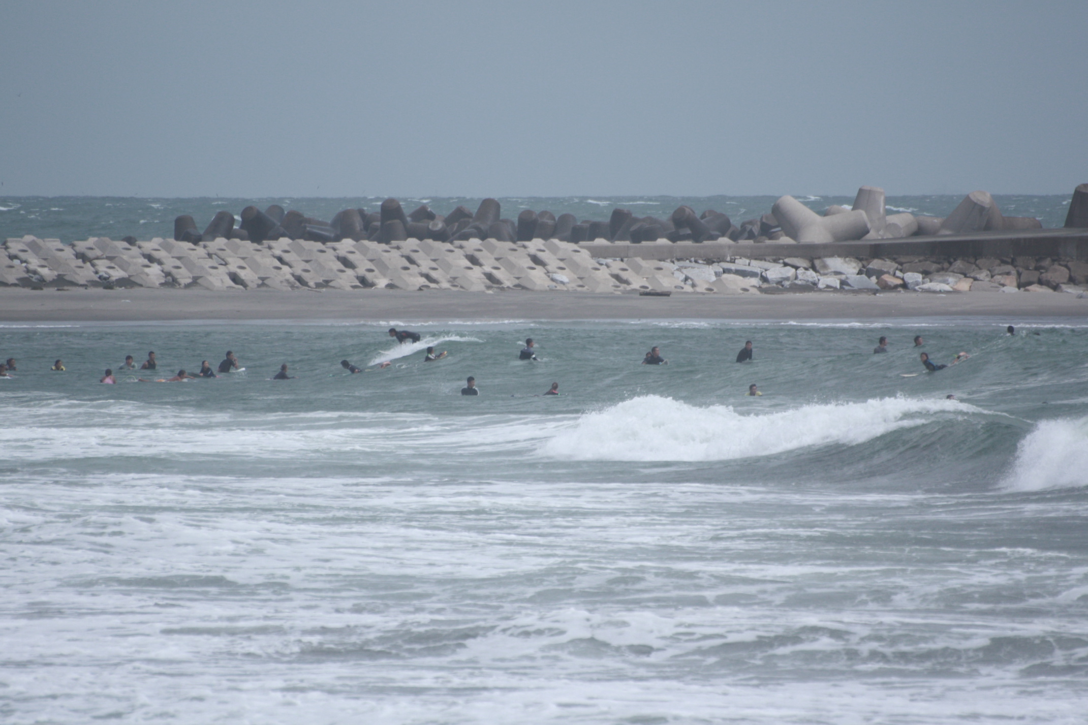 風の影響を軽減できる堤防脇などはサーファーが密集気味ですので、