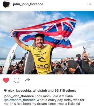 ジョンジョンさんのWSL(World Surf League)優勝が決まったばかり。