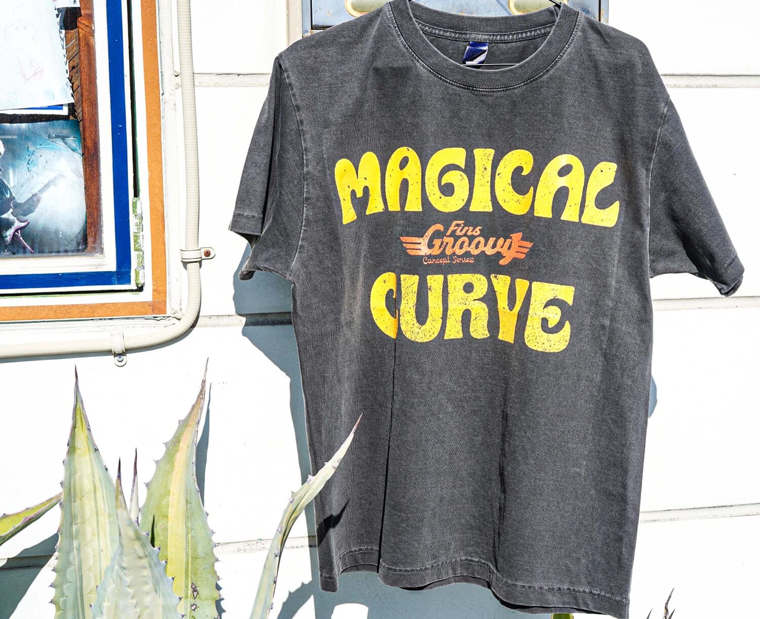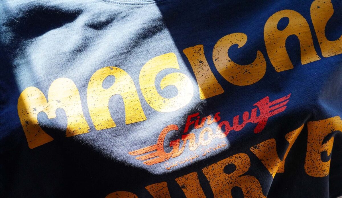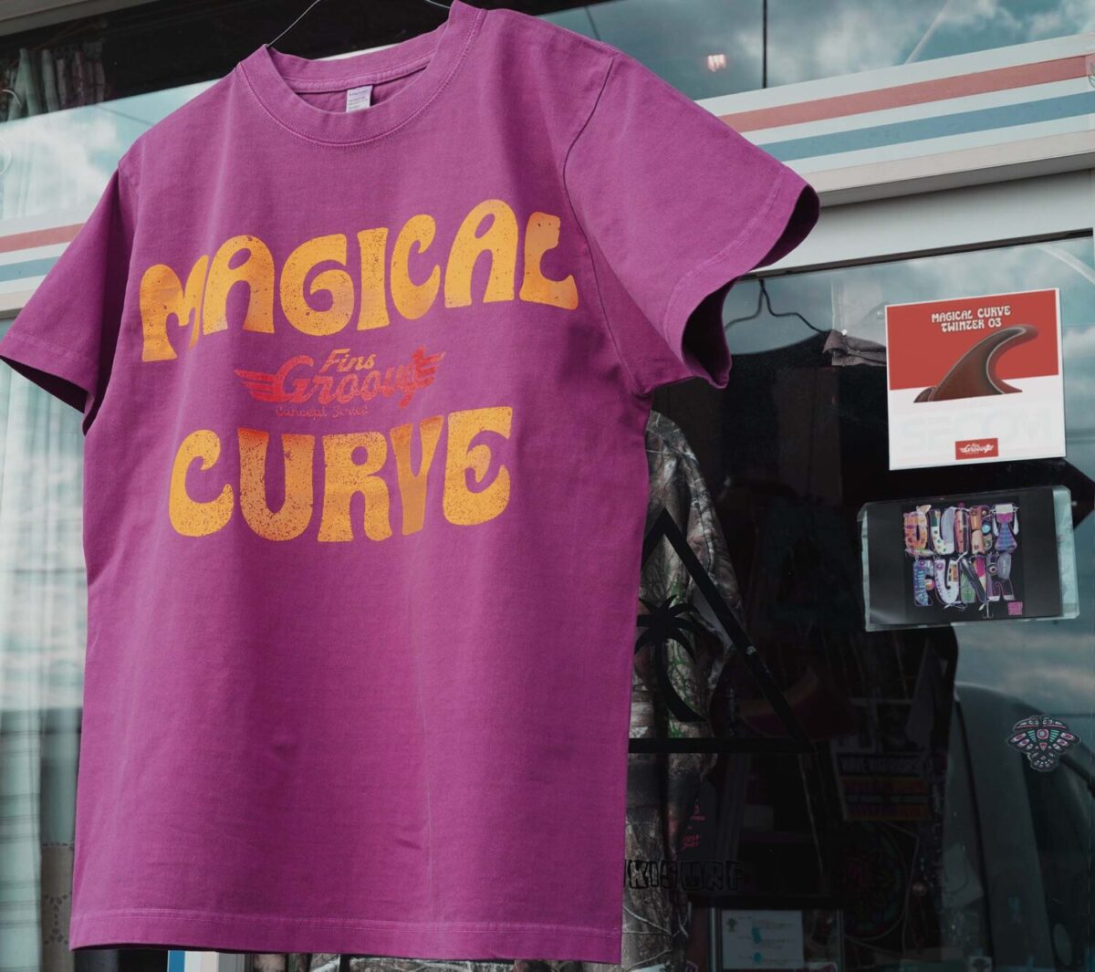 ツインフィンの新定義マジカル・カーブ・フィンのロゴをモチーフにしたグラフィックT。